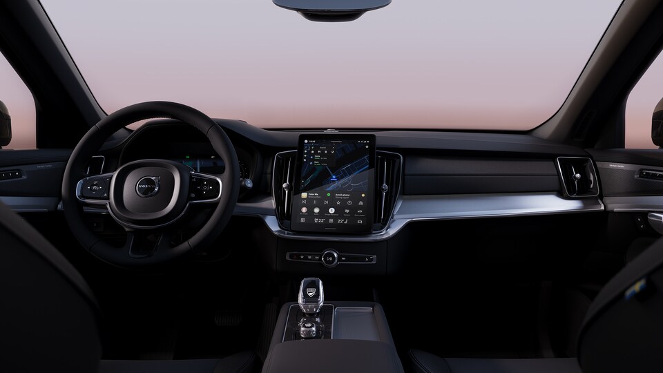 Inside the new Volvo XC90 PHEV, you'll find seating for seven, generous legroom, four-zone climate control, and up to 86 cubic feet of cargo space. It also offers connectivity throughout the cabin with multiple ports and a wireless smartphone charging pad. The vehicle features Google for its touch display interface, with an 11.2-inch screen, providing access to Google Assistant and Maps, along with customizable features. Additionally, it supports Apple CarPlay® and Android Auto™, and includes onboard Wi-Fi options to keep everyone entertained.
