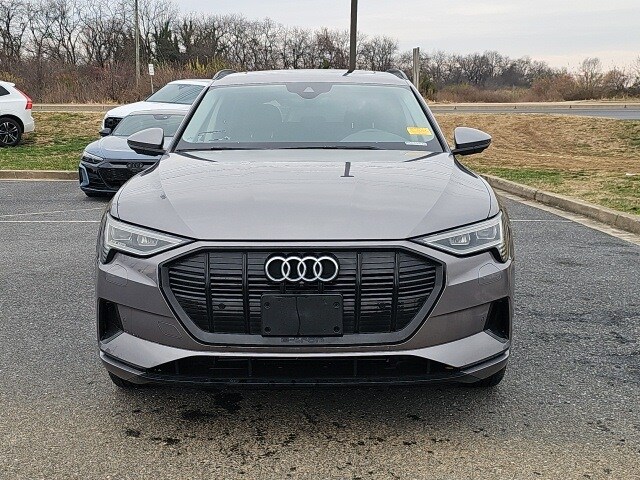 typhoon gray audi e-tron premium cpo electric suv quattro awd used audi ev black optic package convenience plus virtual cockpit navigation plus panoramic sunroof adaptive cruise assist leather interior 360 camera used electric suv maryland inspected frederick md ourisman audi volvo certified pre owned e tron ev suv 95 kwh battery all wheel drive electric vehicle audi e tron gray used luxury suv md dealer sale