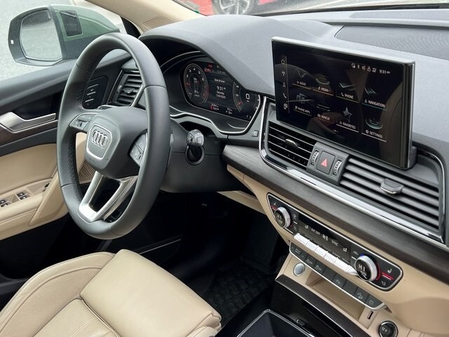 2023 Audi Q5 S line Premium Plus CPO District Green AWD quattro Atlas Beige ventilated seats panoramic sunroof Bang & Olufsen virtual cockpit Warm Weather Package certified preowned used Audi Q5 for sale Frederick MD Urbana Gaithersburg Germantown Hagerstown Leesburg luxury SUV MSI inspected Maryland inspection Audi dealer pre-owned Q5 45 TFSI turbo SUV.