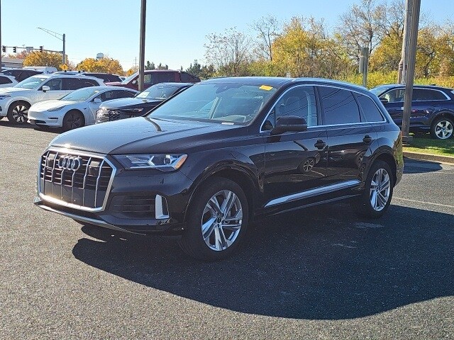 This Certified Pre-Owned 2023 Audi Q7 55 TFSI quattro Premium Plus offers three rows of luxury, advanced safety, and refined power. Finished in Mythos Black Metallic over a Black leather interior, this vehicle was previously part of a corporate fleet, then privately owned in Maryland, and carries a spotless CARFAX history. Fully reconditioned to Audi Certified standards and ready for its next driver.