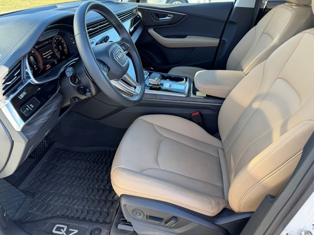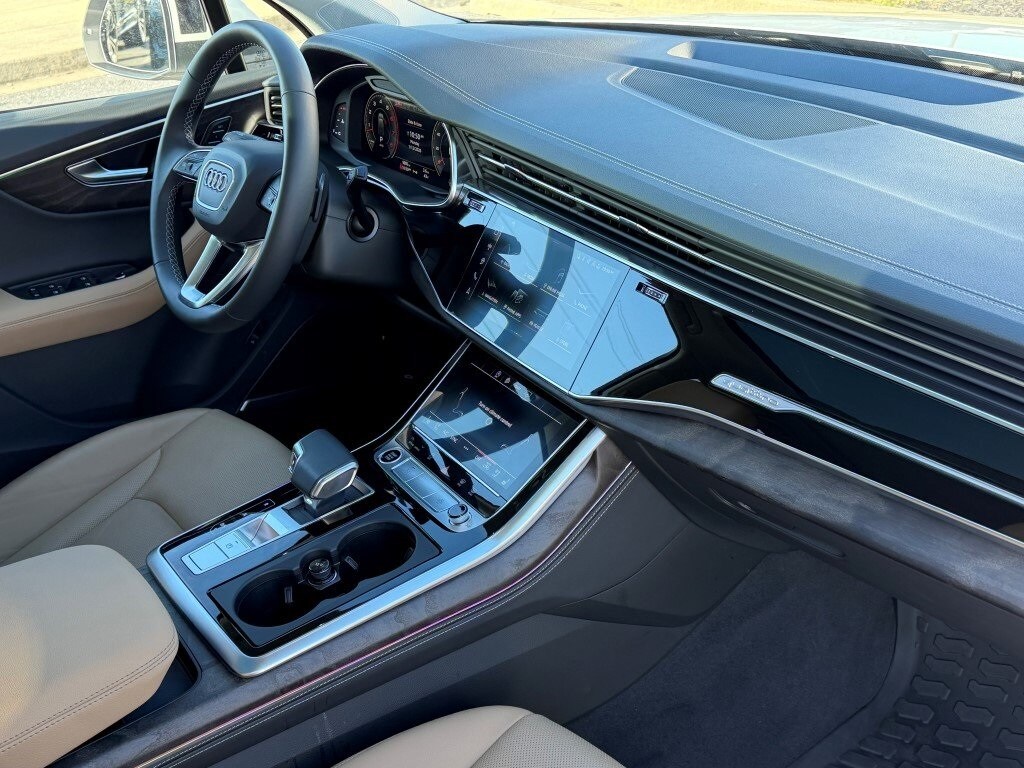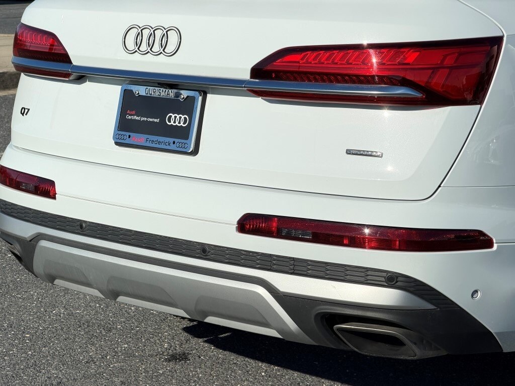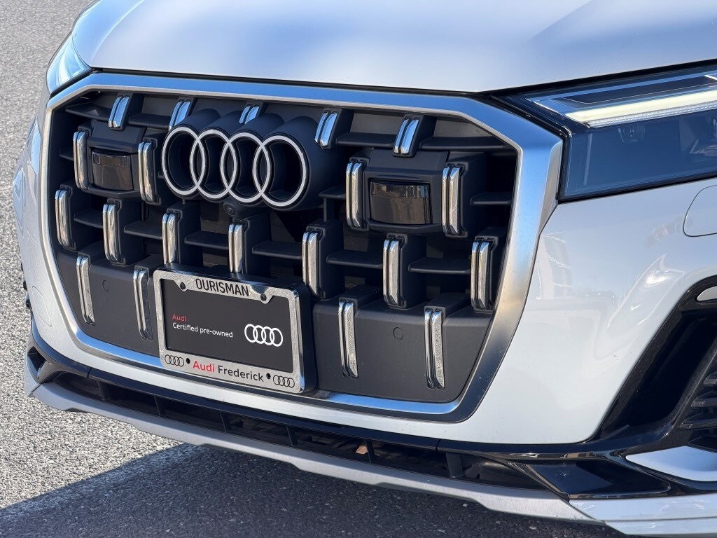 Used 2025 Audi Q7 Premium Plus quattro for sale Frederick MD, Audi Q7 55 TFSI AWD luxury SUV, certified pre-owned Audi Q7 near Urbana, Buckeystown, Mount Airy, Ijamsville, Germantown, and Rockville, CPO Audi SUV Maryland, Glacier White Metallic Audi Q7 Saiga Beige interior, three-row luxury SUV quattro all-wheel drive, Audi Q7 Premium Plus Executive Plus package, used Audi dealer Frederick Maryland, low-mileage luxury SUV Audi, certified Audi Q7 for sale near Washington DC and Northern Virginia.